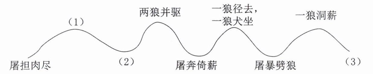 10. 《狼》篇幅短小,结构紧凑。文中描述的狼与人的斗争过程可谓一波三折,最终结局也出人意料。请你结合课文内容,把故事情节补充完整。