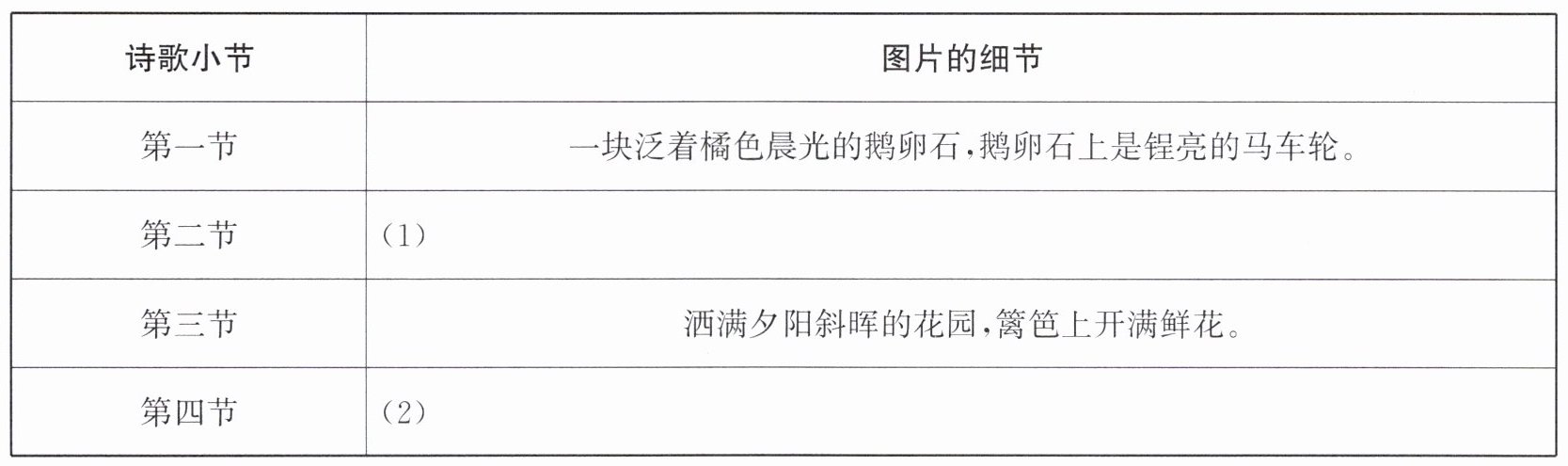 6.[配画]依据诗歌各小节内容,描绘所需图片的细节。