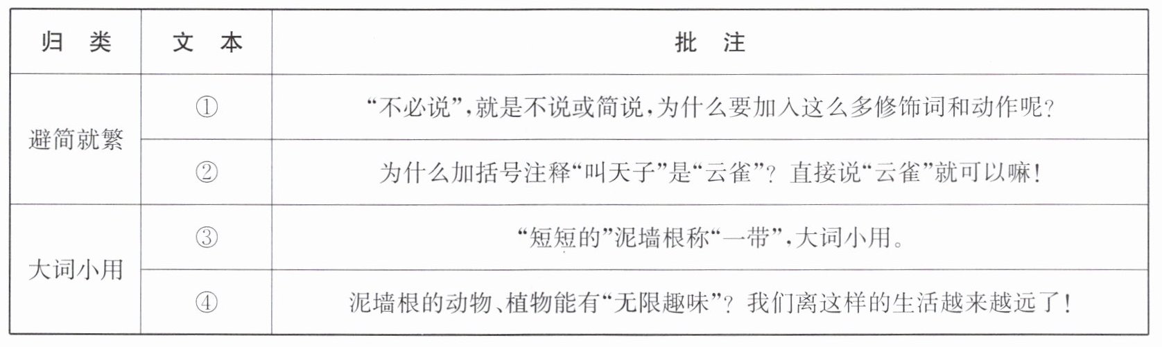 8. 下面是同学们对本段语言“矛盾”处的批注,请任选一类谈谈作者这样写的妙处。