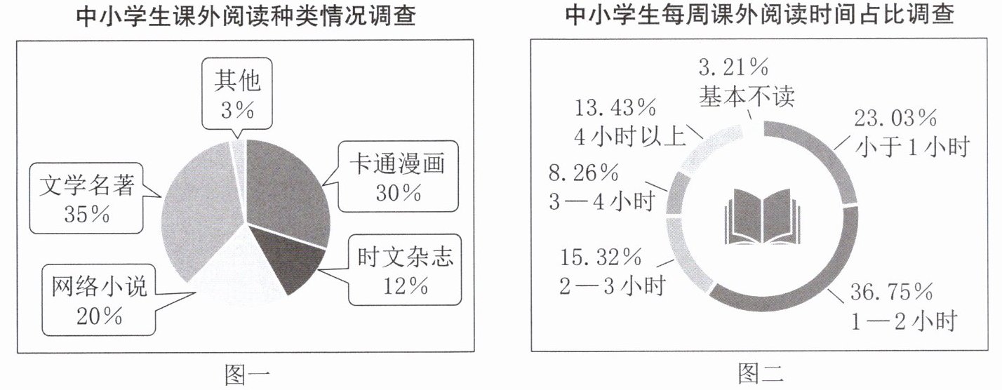 (2)下面是小语同学整理的两份关于中小学生课外阅读情况调查表,说说你的发现。
