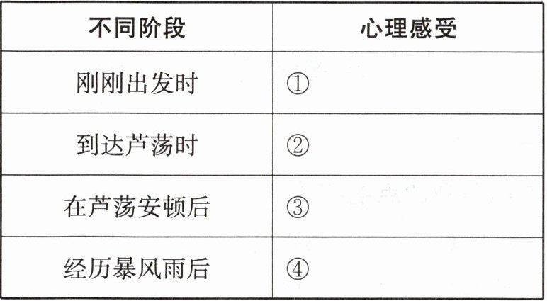 4. 随着故事情节的发展,杜小康的心理发生了怎样的变化?请填写下表。