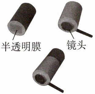 小刚同学自制的照相机如图所示,在较暗的教室内,把照相机镜头对着明亮的室外,拉动纸筒,在半透明膜上可以看到室外景物清晰的像。