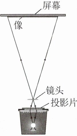 1. 投影仪的构造:镜头、投影片、光源等。镜头是