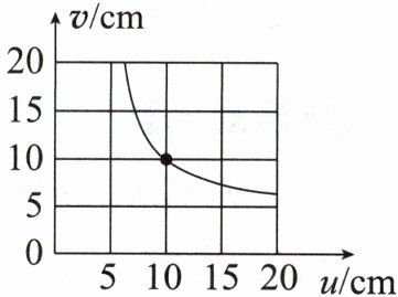 5. 某同学在探究凸透镜成像规律的实验中,绘制了如图所示的图像($ v $ 表示像到凸透镜的距离,$ u $ 表示物体到凸透镜的距离)。用该凸透镜做放大镜使用时,被观察的物体到透镜的距离应该在