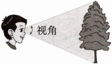 2. 视角:观察物体时,从物体两端(上、下或左、右)引出的光在人眼处所成的夹角。