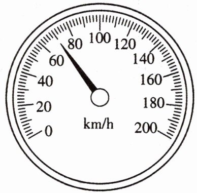 例4 汽车司机座位前安装有速度表,它可以直接显示出汽车的速度。某汽车在行驶时,速度表的指针如图所示,该汽车以这个速度行驶30min,通过的路程是