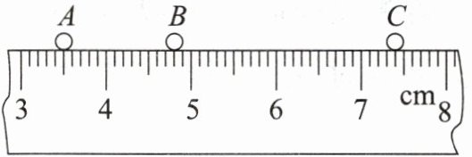 3. 频闪照相常用来研究物体的运动。某小球运动时每隔0.1 s的频闪照片如图所示,A、B、C是小球运动过程中连续通过的三个位置。由图可知,小球从A位置运动到C位置通过的路程是
