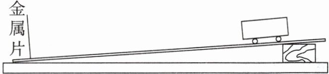 2. 如图所示,在测量平均速度的实验中,提供的实验器材有木板(长120.0 cm,底端有金属片)、小车(长15.0 cm)、秒表、木块。