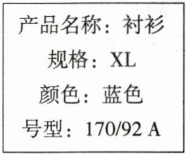2. (福建中考)某衬衫吊牌的部分信息如图所示,号型“170/92 A”表示适穿人群的特征参数及体型。“A”表示适用于一般体型,“170”表示身高 170 cm,“92”表示(