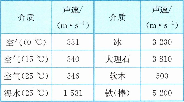 |介质|声速$/(m·s⁻^1)$|介质|声速$/(m·s⁻^1)$|