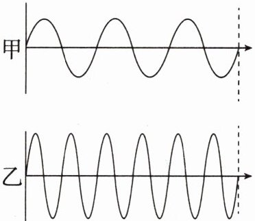 2. 声音的波形:如图所示,甲波形比较稀疏,表明声音的频率较