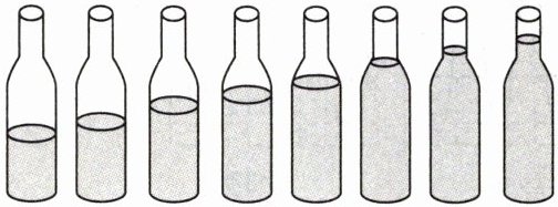 8. 如图所示,同学们自制了一组小乐器,8 个相同的透明玻璃瓶中装有不同高度的水,用同样大小的力敲击 8 个玻璃瓶,会发出不同的声音。这个“不同的声音”主要是指声音的(