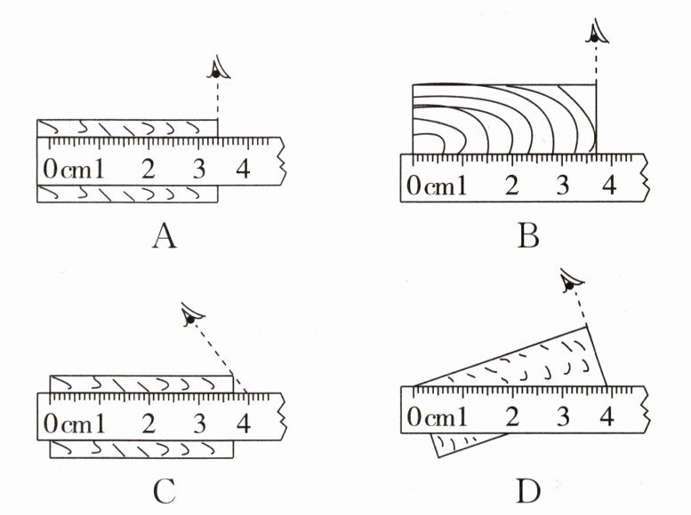 4. 如图所示,在使用刻度尺测量木块的长度时,操作正确的是(