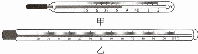 (前两空均选填“甲”或“乙”)。图甲温度计的示数是38.5