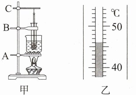。若组装器材时,温度计的玻璃泡碰到了试管底部,应将图甲中的C向上