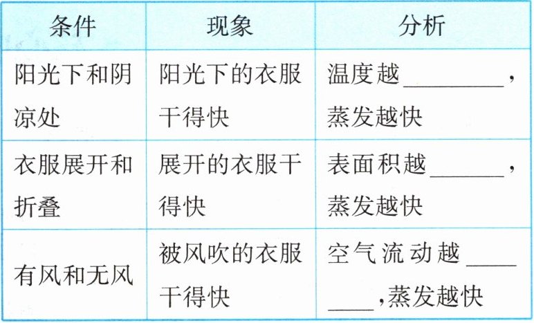 | 阳光下和阴凉处 | 阳光下的衣服干得快 | 温度越