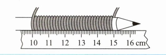 | 累积法 | 对于无法直接测量的微小量,可以把数个相同的微小量放在一起测量,再将测量结果除以被测量的个数,就可以得到该微小量。如图所示,测量铜丝直径时,把细铜丝在铅笔上紧密排绕若干圈,测出这个线圈的总长度 $l$, 数出细铜丝的圈数 $n$, 则细铜丝的直径 $d= \frac{l}{n}$ |