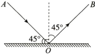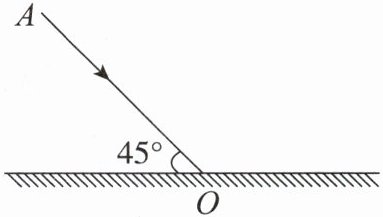 例2 一条光线AO照射在平面镜上O点,如图所示,请在图中画出它的反射光线OB并标出反射角的位置及大小。