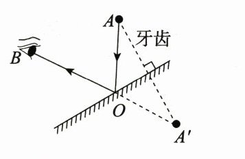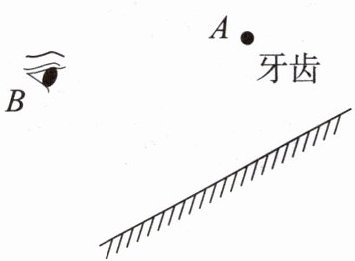 8. 小聪利用平面镜检查弟弟牙齿的发育情况,请在图中作出眼睛B观察到牙齿A的像的光路图(保留作图痕迹)。