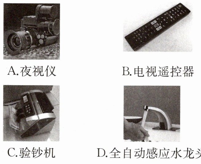 例4 如图所示的四种仪器中,不属于利用红外线工作的是(