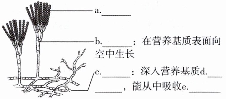 c.____:深入营养基质d.____,能从中吸收e.____