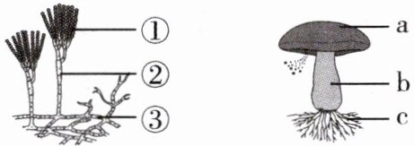 2. 下图是青霉和蘑菇的结构示意图,下列叙述错误的是( )