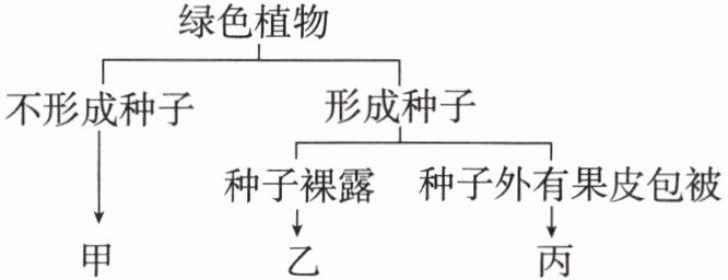 2. 下图为葫芦藓、油松、肾蕨和玉米的分类图解,其中乙、丙代表的植物分别是( )