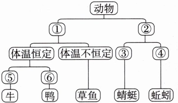 (2)小丽把鳄鱼、海马归为一类,把蜗牛归为另一类。她的分类依据是( )