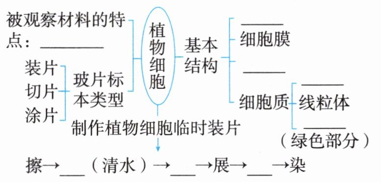 薄而透明 细胞壁 细胞核 液泡 叶绿体 滴 撕 盖