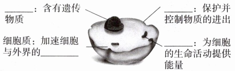 (2) 观察并绘图:人的口腔上皮细胞为不规则状,含有____、细胞膜(显微镜下不易看清,可调____视野)、细胞质等。画一个细胞结构简图并标注各部分的名称。