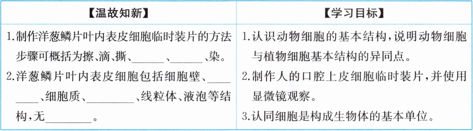 1. [实验·探究]观察人的口腔上皮细胞和动物细胞