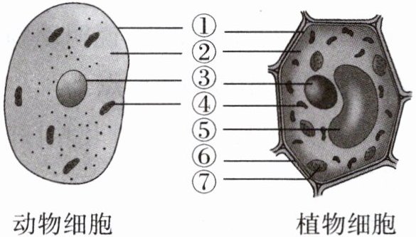 (2) 不同点:植物细胞有[⑤]____、[⑥]____,绿色部分的植物细胞还有[⑦]____,而动物细胞不具有这些结构。