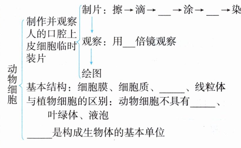 - 基本结构:细胞膜、细胞质、____、线粒体