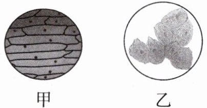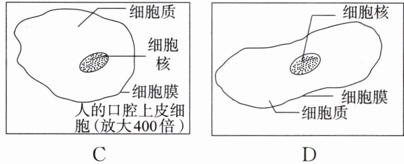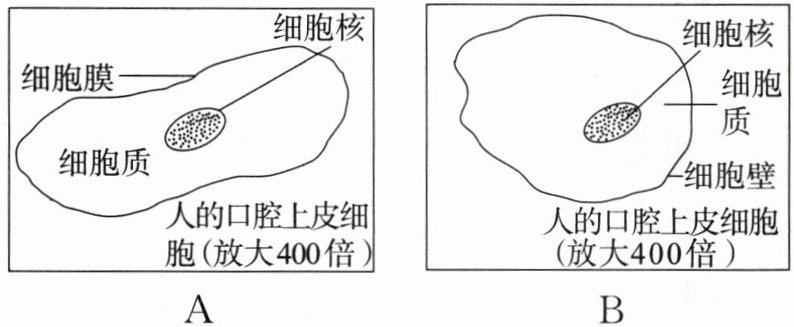 5. 右上图所示是某同学在显微镜下观察洋葱鳞片叶内表皮细胞临时装片和人的口腔上皮细胞临时装片时看到的图像,请回答第(1)~(2)题。