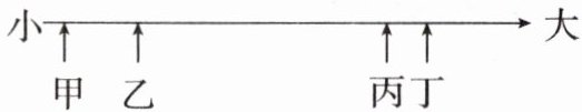 B 解析:四种物质按照体积由大到小依次为太阳、月球、口腔上皮细胞、氢原子。根据“图中越靠近左端的物质,体积越小;越靠近右端的物质,体积越大”可知,甲代表氢原子,乙代表口腔上皮细胞,丙代表月球,丁代表太阳。