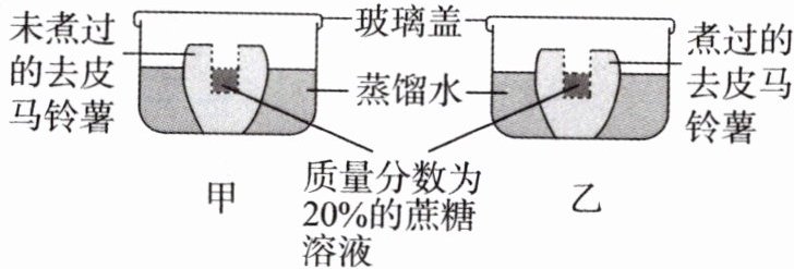 D 解析:细胞膜可以控制物质进出。乙组的马铃薯细胞已死亡,细胞膜失去控制能力,因此在乙组的蒸馏水中能明显检测到蔗糖分子。