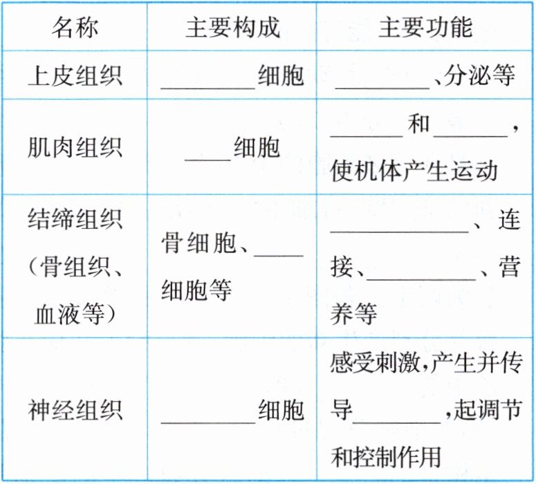 2. 组织:由____相似、____相同的细胞联合在一起形成的细胞群叫作组织。