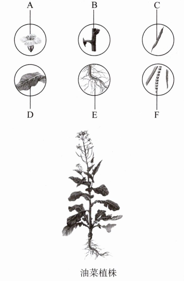 (1)A~F是油菜的六种器官,其中属于生殖器官的是____,属于营养器官的是____。(填字母)
