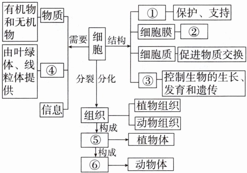 1. 人类对细胞的认识经历了漫长的岁月,凝聚着一代又一代科学家的心血。细胞是生物体结构和功能的基本单位。下图是关于细胞的概念图,请据图回答下列问题。