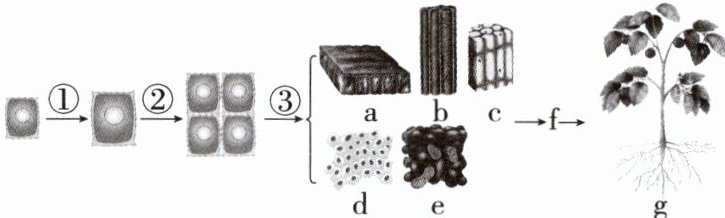 (2)②过程使细胞的数目增多,表示细胞分裂;经过③过程,细胞的形态、结构发生了差异性的变化,表示细胞分化。黑珍珠番茄的结构层次由小到大依次为细胞→组织→器官→黑珍珠番茄。