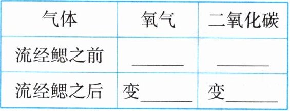 (2) 呼吸:用______呼吸,其主要部分是密布毛细血管的鳃丝,如下图所示。水从口流进,再从鳃盖后缘流出。(部分气体含量变化情况如下表所示)