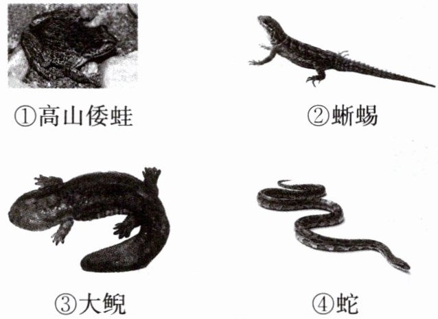(1)四种动物中,能够终生生活在陆地上的是_________(填序号),这是因为它们能将受精卵产在陆地上,卵表面有_________保护,因此,其生殖和发育可以摆脱_________。