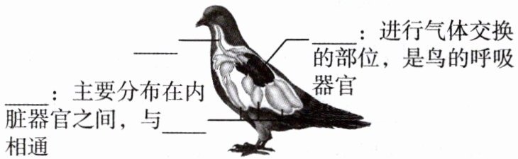 b. 呼吸过程及意义:吸气时,吸进肺的空气小部分在肺内进行气体交换,大部分则进入气囊;呼气时,气囊内的气体进入____内进行气体交换。这样,鸟不论吸气还是呼气,肺内都有富含氧气的空气通过,从而提高了____的效率。