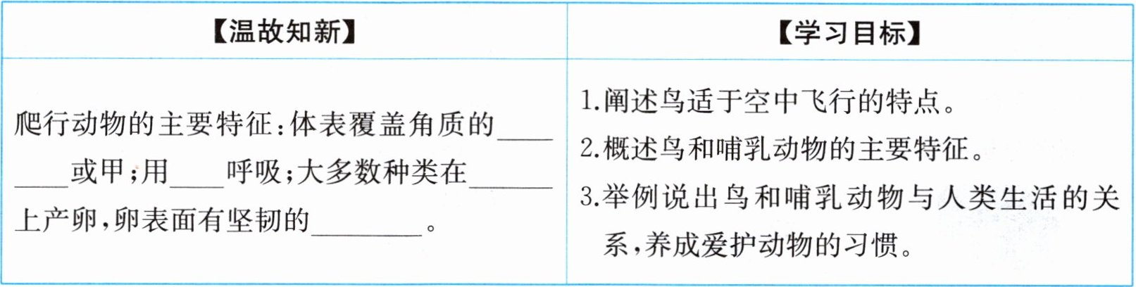 3. 举例说出鸟和哺乳动物与人类生活的关系,养成爱护动物的习惯。
