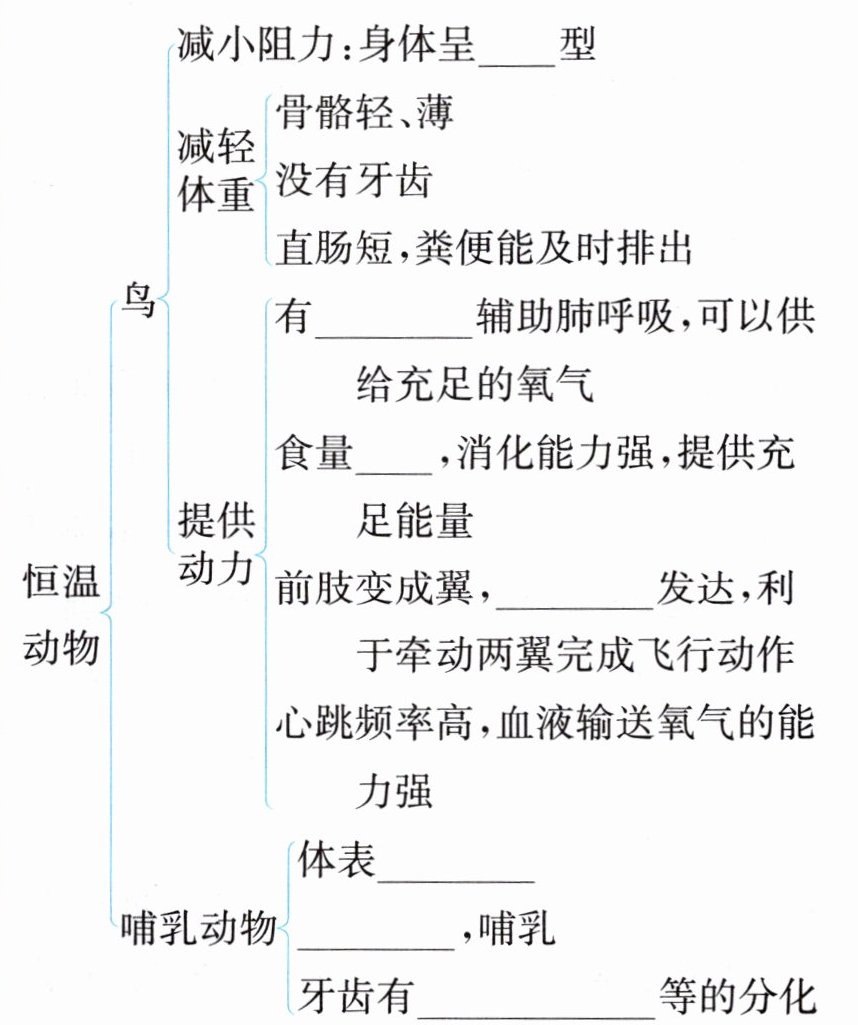 流线 气囊 大 胸肌 被毛 胎生 门齿、臼齿和犬齿