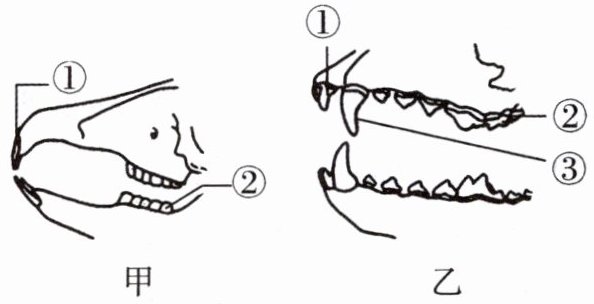 A.图甲表示兔的牙齿,图乙表示狼的牙齿