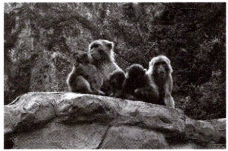 9. 下图所示动物为猕猴,它们营群体生活,主要栖息在树上或岩山上,以野果为食,也吃小鸟、鸟卵和昆虫等。请分析回答下列问题。
