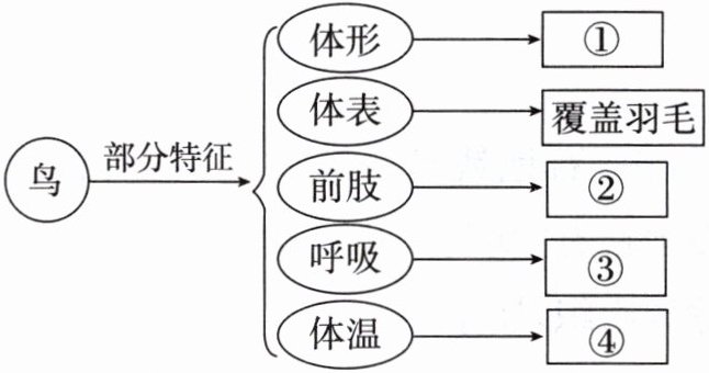 12. (江苏无锡)某同学尝试填写鸟部分特征关系图(如右上图所示),其中填写错误的是( )