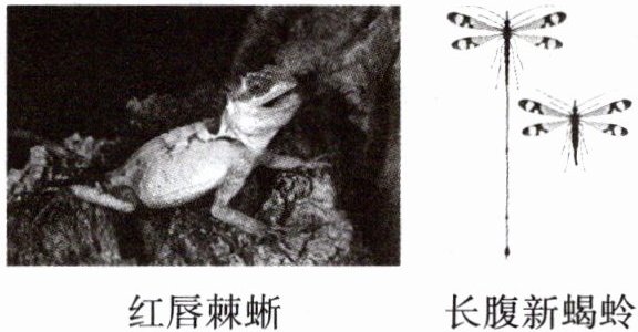 10. (湖南张家界)我国动物家庭又添新成员,下图所示是近年来在云南发现的爬行动物新物种红唇棘蜥和长翅目昆虫长腹新蝎蛉。下列有关这两个新物种的分析,正确的是( )