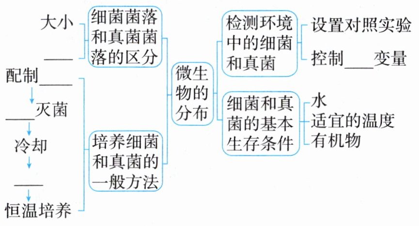 - 检测环境中的细菌和真菌:设置对照实验,控制______变量